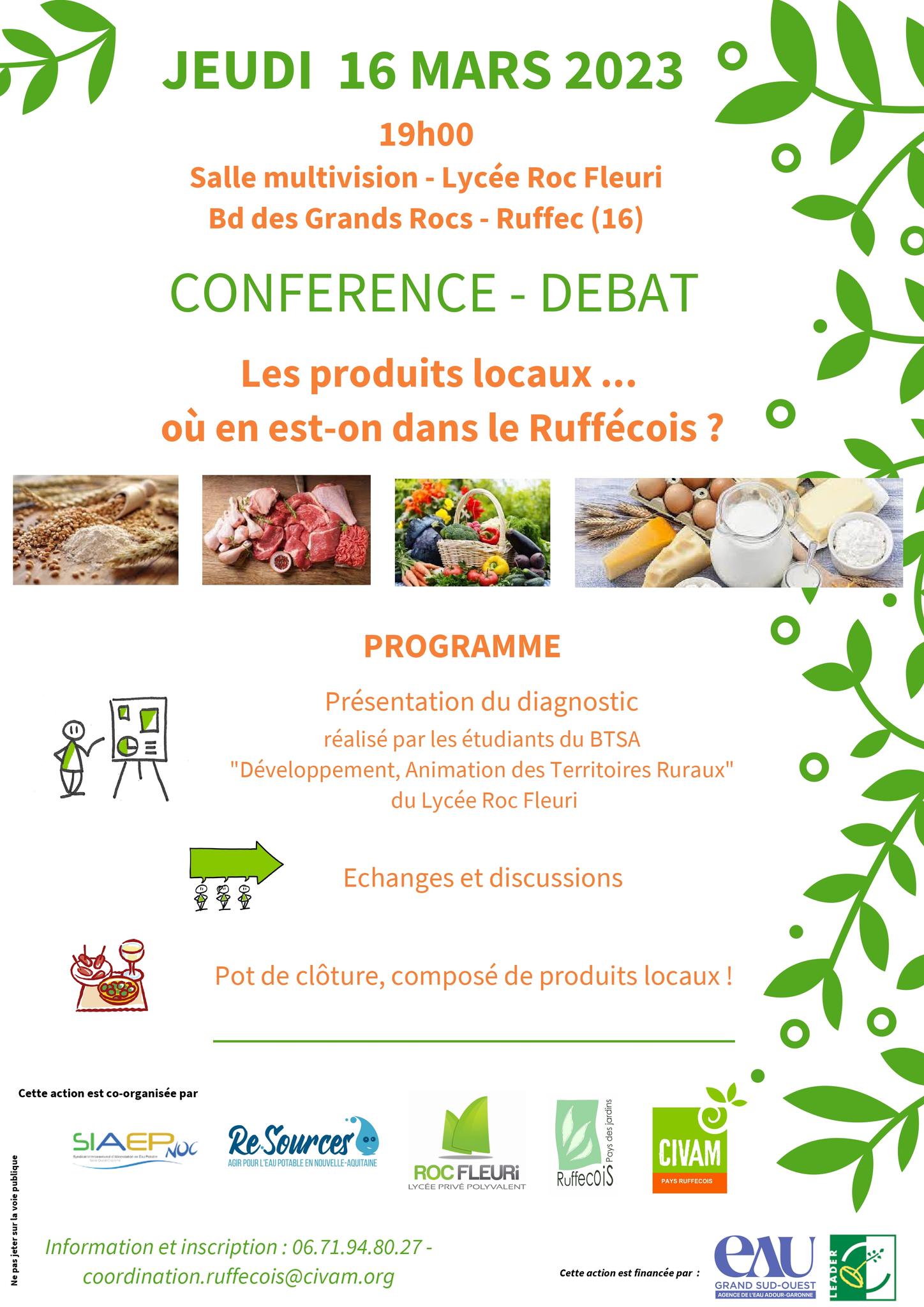 Le Jeudi 16 Mars 2023 à la salle multivision du Lycée Roc Fleuri à Ruffec, présentation du diagnostic réalisé par les étudiants du BTSA "Développement, Animation des Territoires Ruraux" sur le thème "Les produits locaux... où en est-on dans le Ruffécois ?".