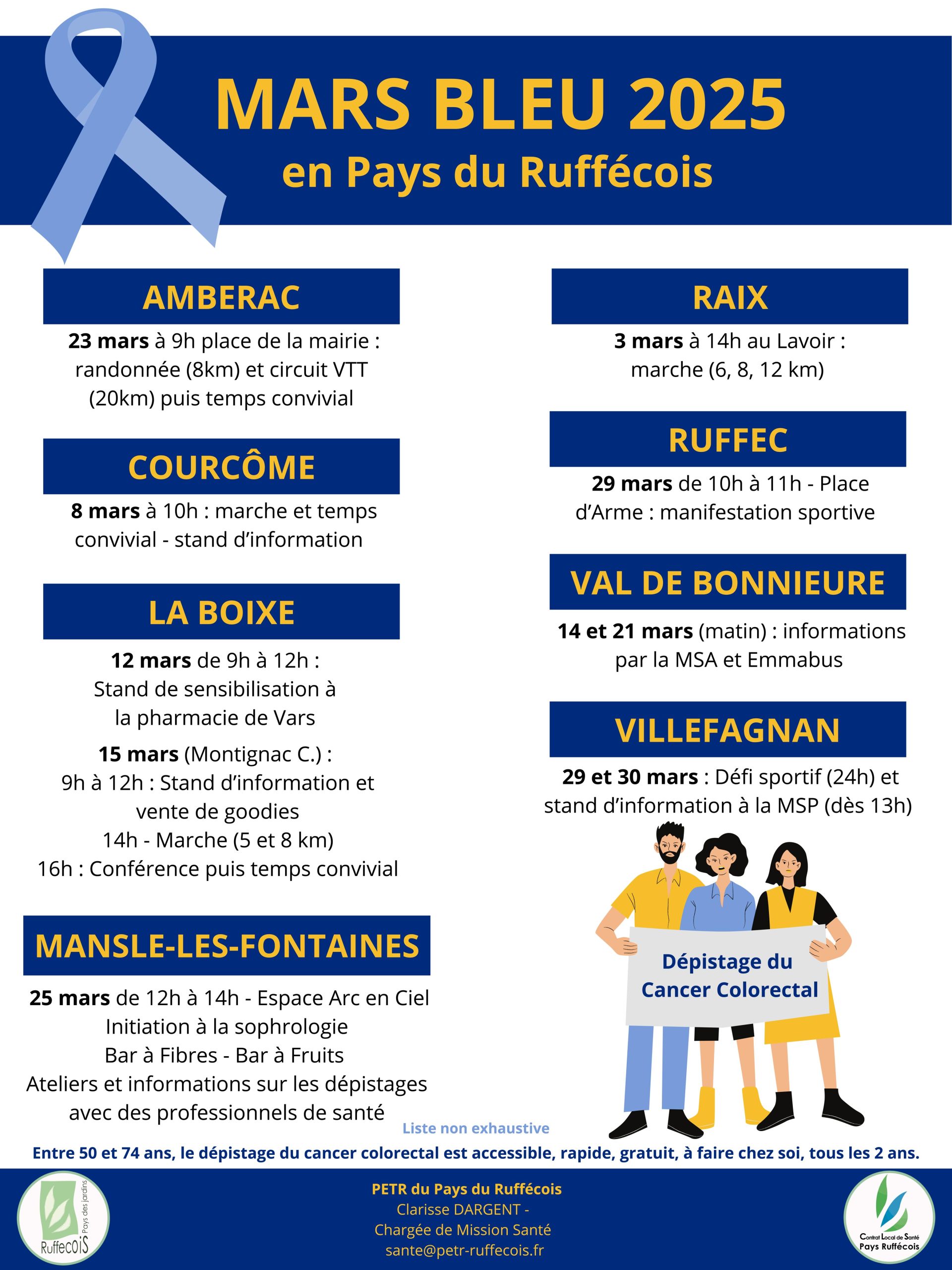 MARS BLEU 2025 EN PAYS RUFFÉCOIS Découvrez le programme de l'opération "Mars Bleu" 2025 en Pays Ruffécois.